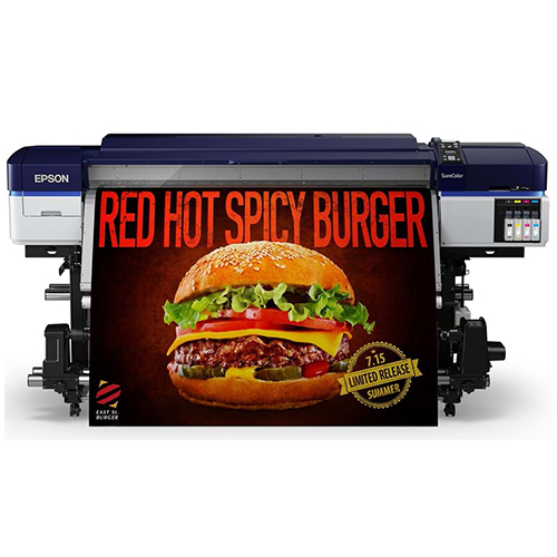 Introducing the all-new Epson SureColor S60600.The 64-inch SureColor S60600 features newly-developed Epson UltraChrome® GS3 4-color solvent ink for outstanding print quality, durability, and media compatibility. When combined with an all-new precision media feeding system and a high-performance Dual-Array PrecisionCore®TFP print head, theSureColor S60600 is capable of producing sellable quality banner at an astonishing 550 ft2per hour, while also producing adhesive vinyl output at up to 310 ft2per hour–making the new SureColor S60600one the most productive sign printers ever developed